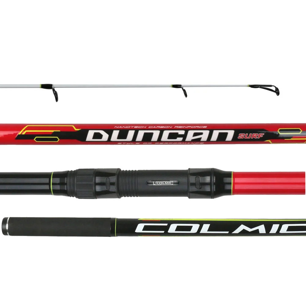Atış esnasında dinamik tepkilere sahip Colmic XT sınıfı orta sert DUNCAN Surf Kamış, Yumuşak dokulu SST yüzey kaplama teknolojisi ile entegre edilmiş tek yönlü ve uzun lifli U.L.A.F. Yüksek modul karbon gövde, 45cm'lik son kısmı glow boyalı mükemmel hassasiyete sahip solid karbon hibrit uç parça gibi detaylar ile tasarlandı.